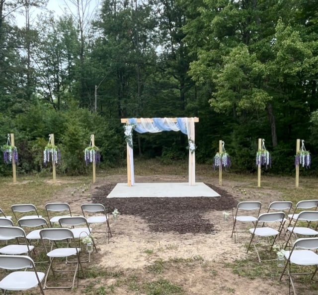 We have also constructed a wedding arch so that you can conduct your ceremony here on the farm just a short walk from the wedding barn surrounded by the beauty of nature if you'd like. Want to make a dramatic entrance? Add our horse drawn wedding carriage to your big day and make it even more memorable. We can keep the cost reasonable because we don't have to transport our horse and carriage off the farm.