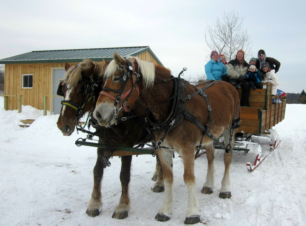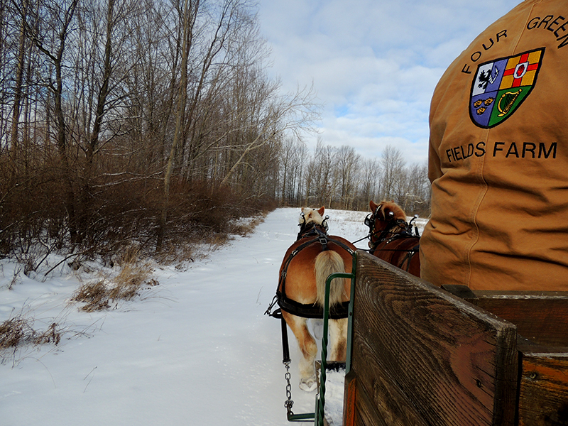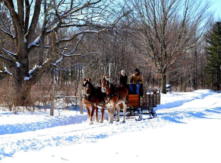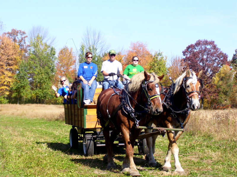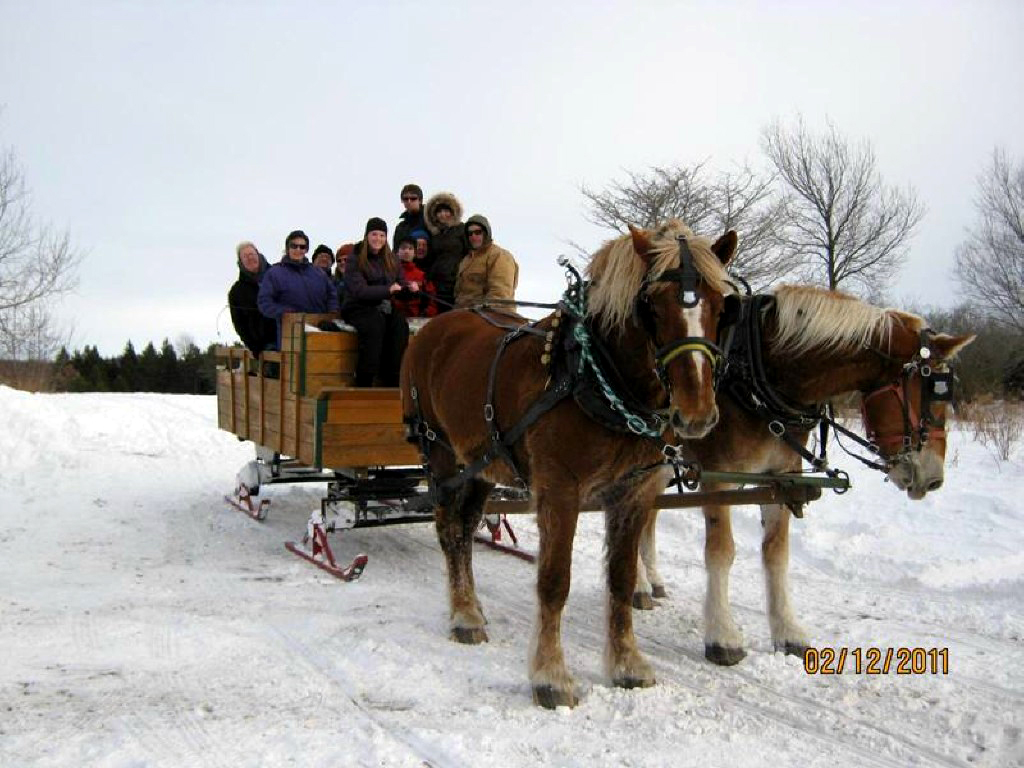We offer private group wagon and sleigh ride opportunities from September to March in addition to wagon rides when our Maze is open and sleigh rides.* We generally only book one group a day because we want you to enjoy the experience and the beauty of our farm at your own pace. We can take groups of up to 12 people on the wagon at a time (a few more if some are kids or real skinny) and our prices will fit the budget of even the most cost conscious group. (Prices are listed below.) We can take groups of any size but just understand that only 12 or so can go on the wagon at once. If you've got a really big group, Rocky and Charlie have friends so contact us and we'll try to add a second team and sleigh.