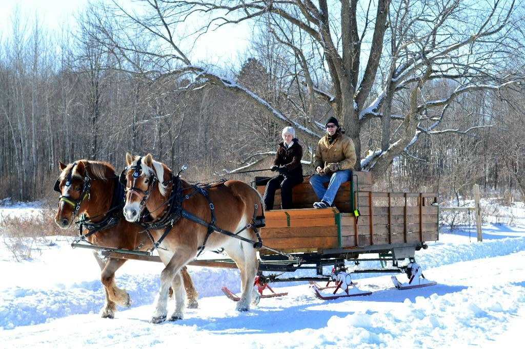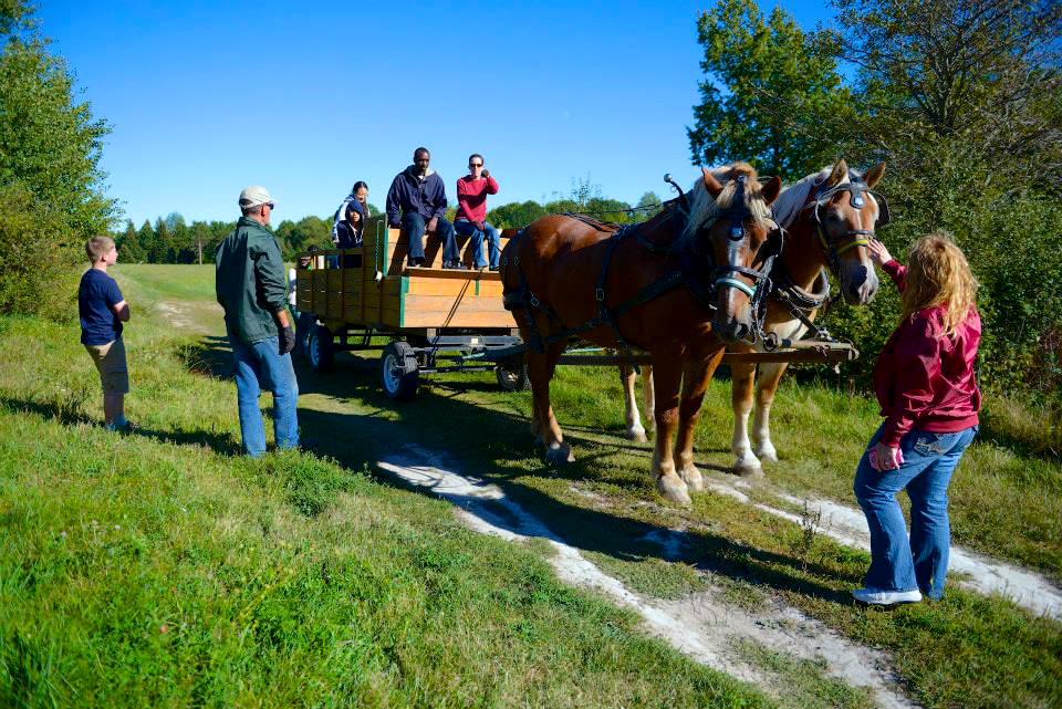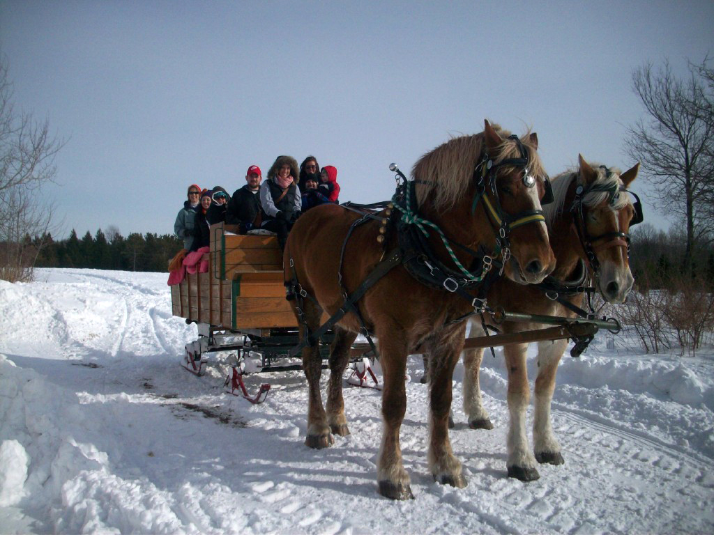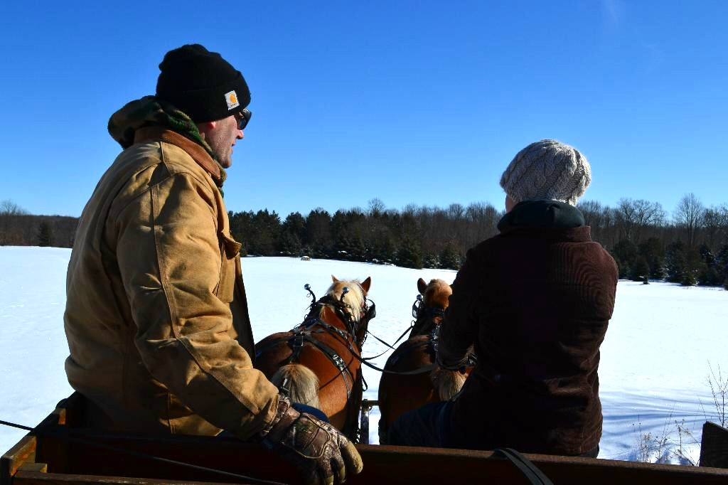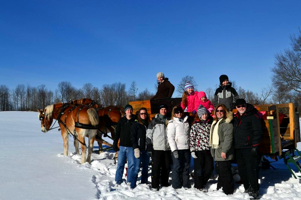 We offer private group wagon and sleigh ride opportunities from September to March in addition to wagon rides when our Maze is open and sleigh rides.* We generally only book one group a day because we want you to enjoy the experience and the beauty of our farm at your own pace. We can take groups of up to 12 people on the wagon at a time (a few more if some are kids or real skinny) and our prices will fit the budget of even the most cost conscious group. (Prices are listed below.) We can take groups of any size but just understand that only 12 or so can go on the wagon at once. If you've got a really big group, Rocky and Charlie have friends so contact us and we'll try to add a second team and sleigh.
